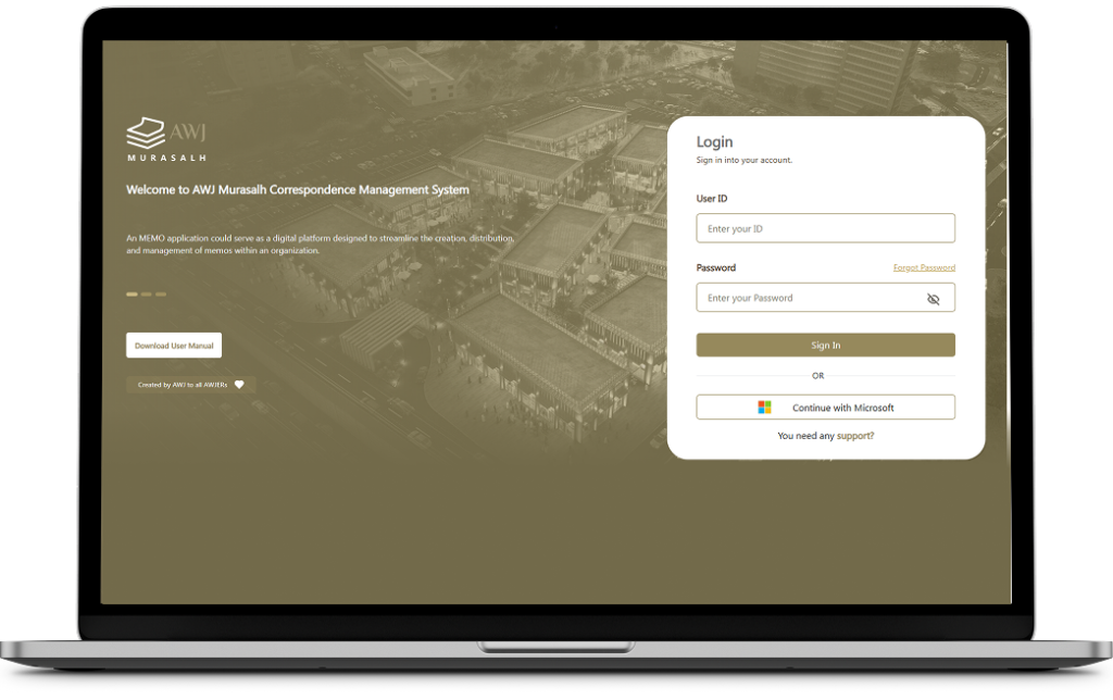 The application offers structured approval workflows, customizable routing, secure cloud storage, and strong authentication, giving AWJ Murasalah a flexible, scalable, and trusted system for handling sensitive documents and correspondence.